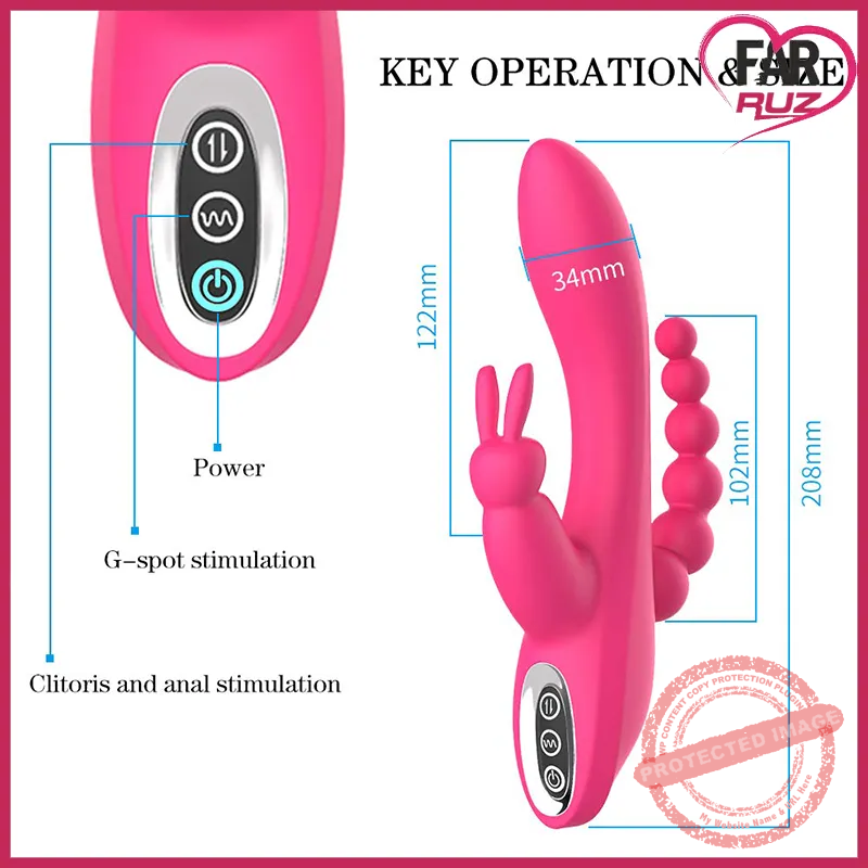 Farruz 3’ü 1 Arada Masajlı Tavşan Wand , aynı anda vajina, anüs ve G noktasını uyaran çok fonksiyonlu bir kadın oyuncağıdır. 6 farklı boncuk boyutu ile daha yoğun iç uyarım sunarken, iki güçlü motoru sayesinde hem derin titreşim hem de hassas masaj etkisi oluşturur.