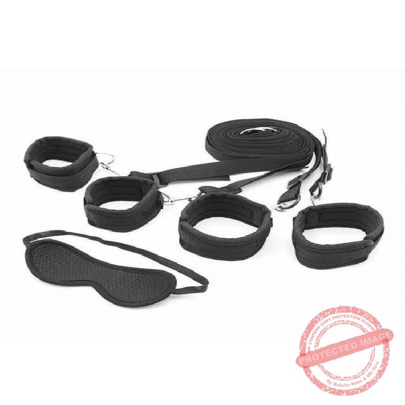 Farruz Siyah El Ayak ve Yatak Bağlama Seti Deri Göz Bandı Hediyeli