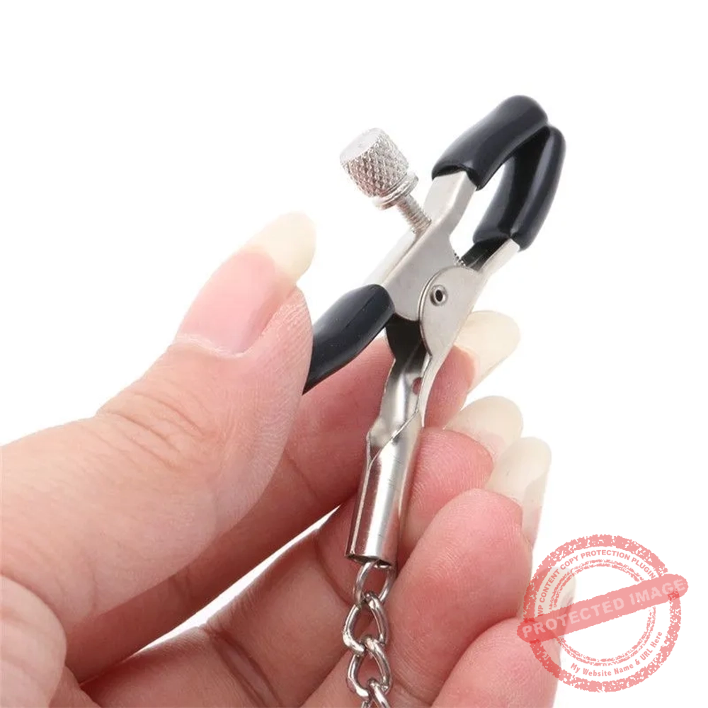 Farruz Zincirli Unisex Meme Kelepçesi, hem kadınlar hem de erkekler için tasarlanmış, yoğun uyarım sağlayan özel bir BDSM fantezi aksesuarıdır. 33 cm zincir ile birbirine bağlı meme kelepçeleri, ayarlanabilir vida sistemi sayesinde istediğiniz sıkılık seviyesine göre kullanabilirsiniz.