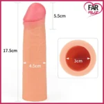 Toplam 17.8 cm uzunluğa sahip olan bu kılıf, penise yaklaşık 2 inç (5 cm) ekstra uzunluk ve %40 çevre artışı kazandırarak performansı belirgin şekilde artırır. Esnek yapısı her erkeğin ölçüsüne uyum sağlar; aynı zamanda kesilebilir uç tasarımı sayesinde kişiye özel mükemmel bir fit oluşturulabilir.